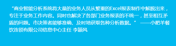 一个平台就是利用金蝶EAS BI商业智能产品,构建小肥羊统一的商业智能分析平台,统一商业智能分析的工具。