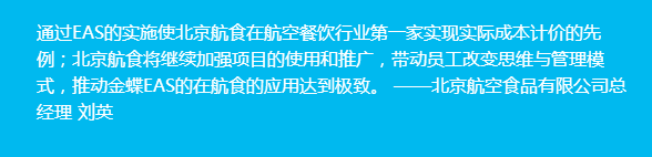 配餐管理:通过金蝶EAS提供的BOS平台,开发了个性化配餐管理系统,解决了的手工打印下发配餐信息不准确和不及时,提供了实时的配餐信息管理,并与中航信订座离港系统集成,实时完成订座信息的传输,保障了配餐管理的高效性和严密性。